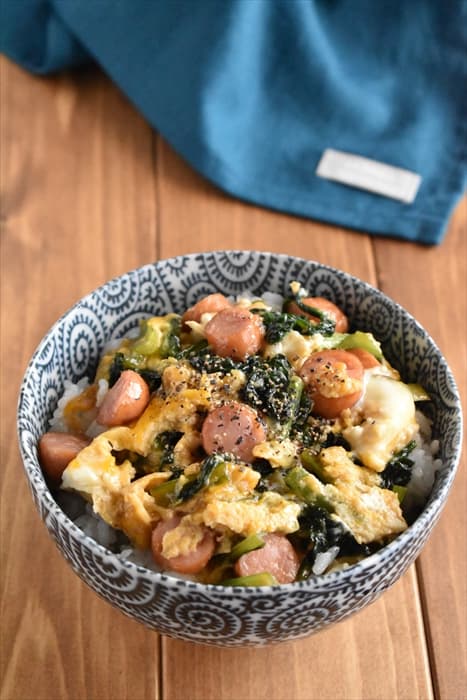 小松菜とウインナーの甘辛丼
